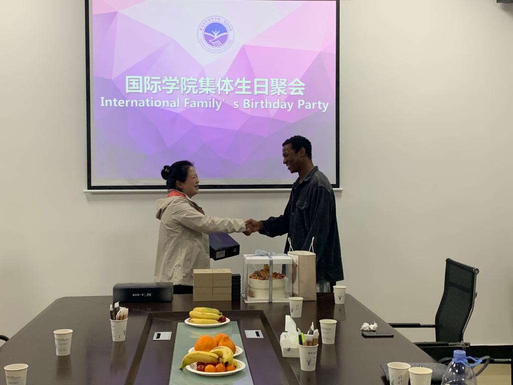 2021年5月6日下午,五一小长假结束后的第一天,国际学院会议室传来阵阵欢声笑语,一场别开生面的集体生日派对正在进行中。