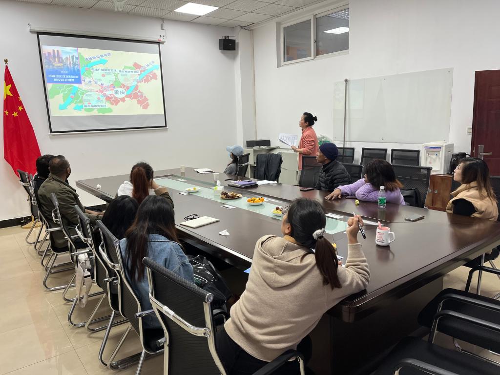 11月4日下午,国际交流合作处全体工作人员、部分外教和国际交流志愿者协会的部分同学在G105会议室举行了《成渝地区双城经济圈规划纲要》分享会,分享会由田原副处长主讲。