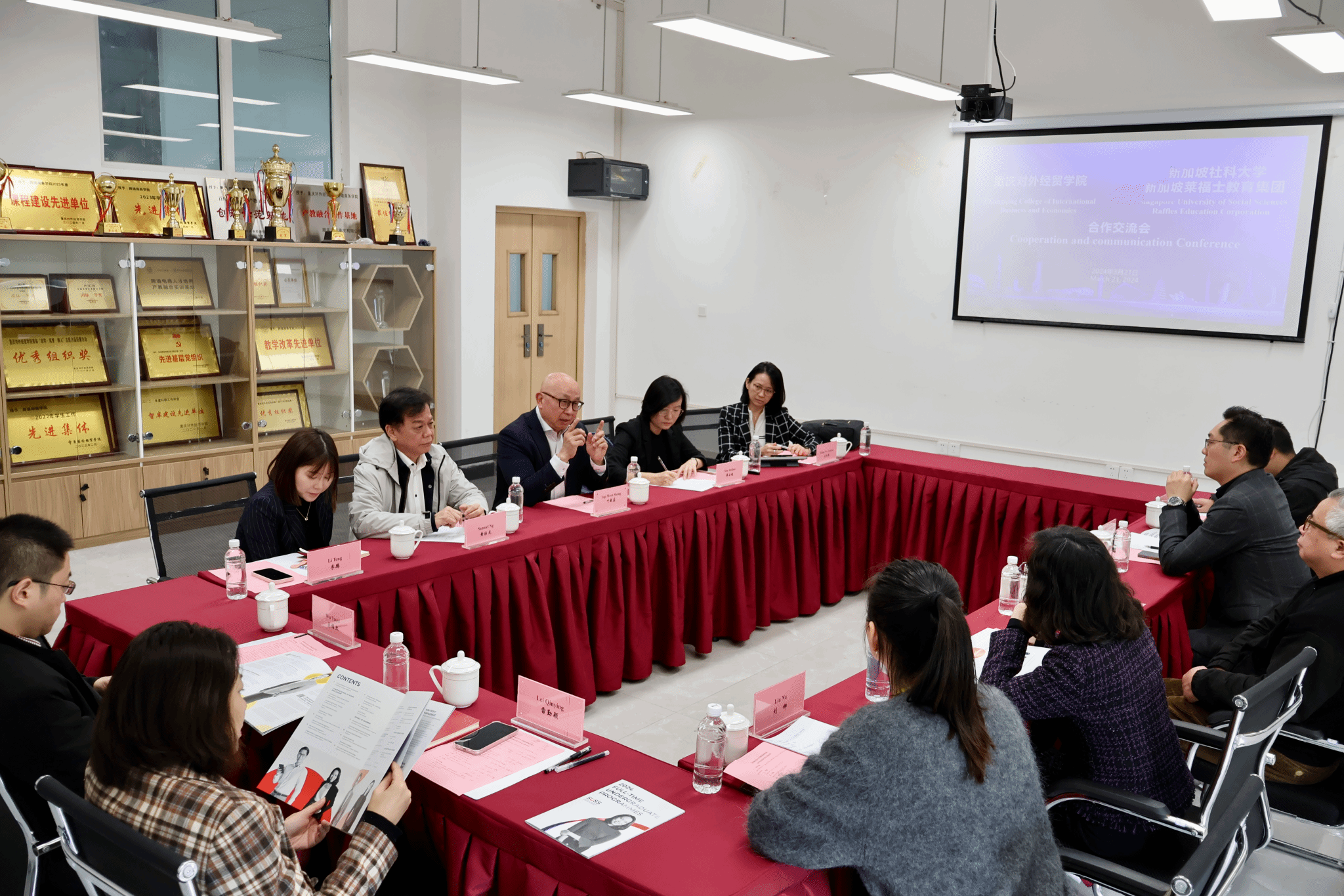 叶敏盛博士感谢学校给予的热情接待,介绍了新加坡社科大学的办学情况。该校海外合作拓展专家薛安超女士介绍了新加坡社科大学办学特色和国际化发展布局。她表示,新加坡社科大学非常重视和重庆的合作,学校的学科专业设置和重庆对外经贸学院高度契合,两校可以在多个领域进行合作。