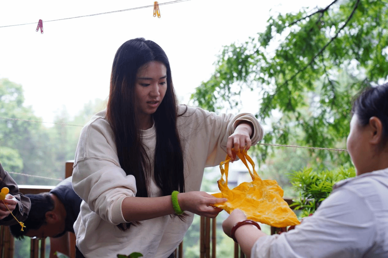 5月11日下午,学校欧美同学会(留联会)组织会员走进北碚缙云山,体验传统植物扎染艺术。