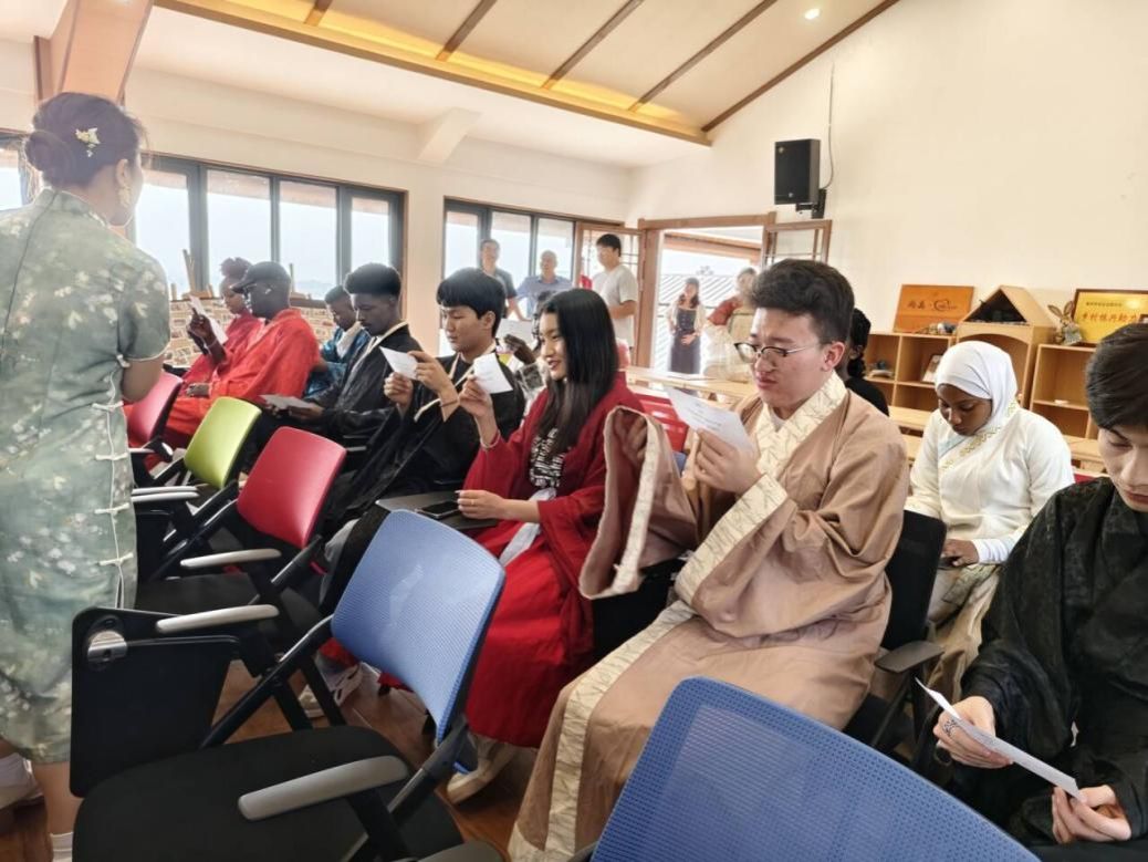 活动伊始,留学生们身着汉服来到经堂村游客中心广场,饱含深情地朗诵中华诗词。诗词的韵律之美与文化内涵被精彩演绎,引得现场乡亲和中国小朋友们掌声阵阵。