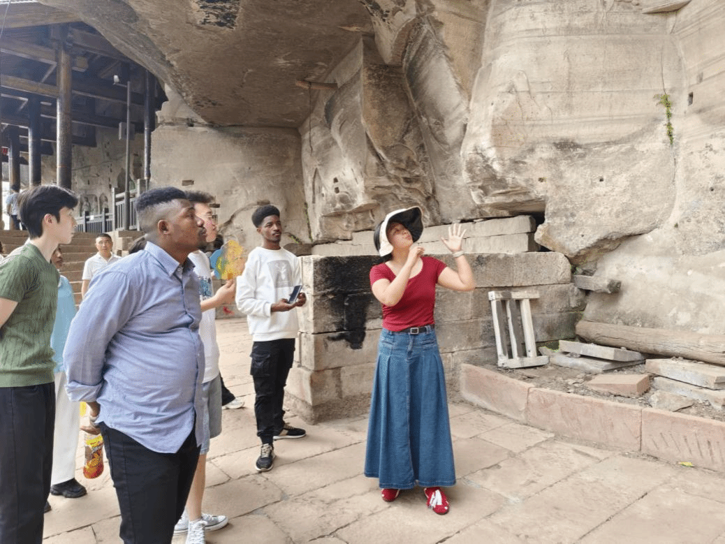 在龙多山摩崖石刻,北魏碑文的苍劲笔锋令众人屏息。留学生们近距离感受汉字的独特魅力,遥望岁月沧桑。此刻,汉字不再是静止的符号,而成为鲜活可触的文明年轮。