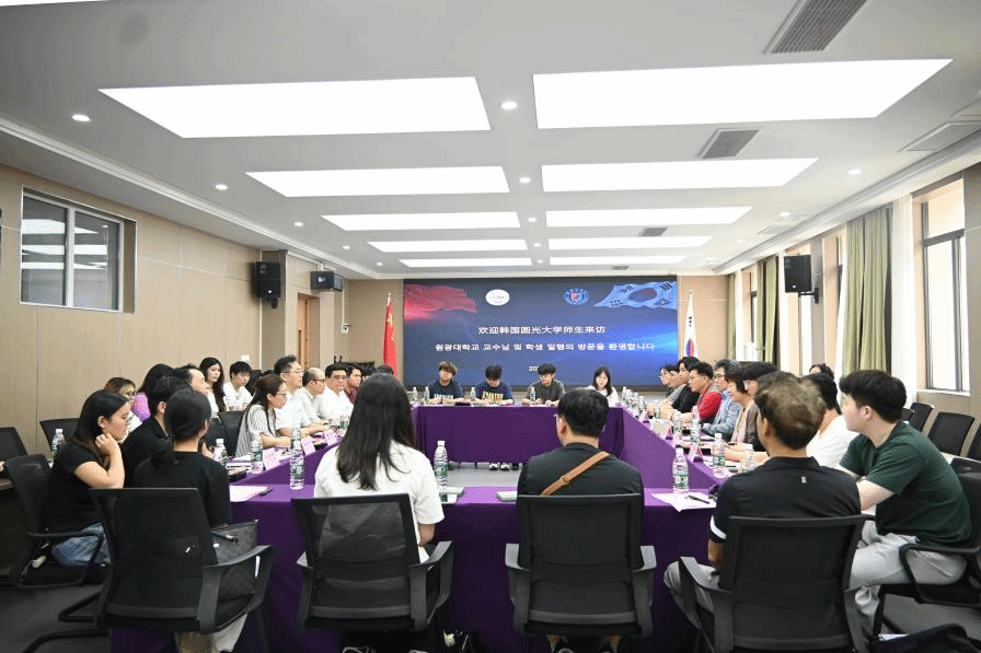 在音乐舞蹈学院208会议室,双方进行了座谈。刘用处长对圆光大学的来宾表示欢迎,并介绍了学校的办学情况。音乐舞蹈学院副院长费毓珺介绍了学院的办学和对韩交流合作,他表示,我校与韩国高校之间有着密切的交流往来,学院教师多有在韩深造的经历,此外也表示学院为来访嘉宾准备了中国民族乐器表演,希望借此机会展示中国民族乐器的独特魅力。