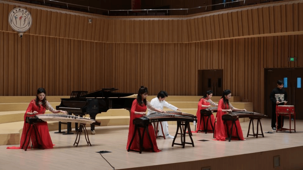 在华彩音乐厅,音乐舞蹈学院的师生们展示了中国的民族音乐。徐晶晶老师的竹笛演奏《牧民新歌》,悠扬欢快的笛声展现了新社会牧民的幸福生活;何静老师带来古筝协奏曲《枫桥夜泊》,婉转的曲调配合枫桥夜泊的独特诗意让人回味无穷。拥中布老师一首蒙古布里亚特民歌《等你归来》,让人仿佛置身辽阔的草原,洋溢着清新、浪漫的气息。音乐舞蹈学院6位同学的古筝重奏《开元盛世》,气势恢宏,盛世的雄浑气象与典雅风情倾泻而出。中国传统音乐的独特魅力和师生们的高超技艺令来访客人们惊叹不已。
