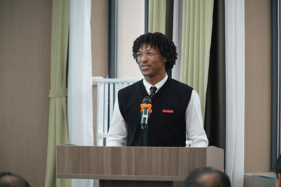 来自美国的乐维老师认为,贸院的七年时光彻底地改变了自己,使其在保持自我的同时学会与不同文化背景的人建立真诚的连接。来自泰国,获得重庆市人民政府外国留学生市长奖学金的程漫同学用流利的中文分享了她在重庆的学习生活体验。“第一次吃火锅时,我被辣得流眼泪。但现在,这已经成为我最想念的家乡味道。”她重点讲述了自己参与学校文化活动的经历:“书法课上,老师手把手教我写'福'字;春节时,中国同学邀请我去他们家吃年夜饭。这些温暖的点滴让我感受到,文化差异不是障碍,而是互相理解的契机。” 作为新生代表,来自阿尔及利亚的米卡表示:“当我第一次站在解放碑前,看着川流不息的人群,我突然觉得在这座城市里,我不只是一个外国人,更是一个新重庆人。”她分享了自己如何在中国同学的帮助下克服语言障碍,逐渐融入校园生活的故事。