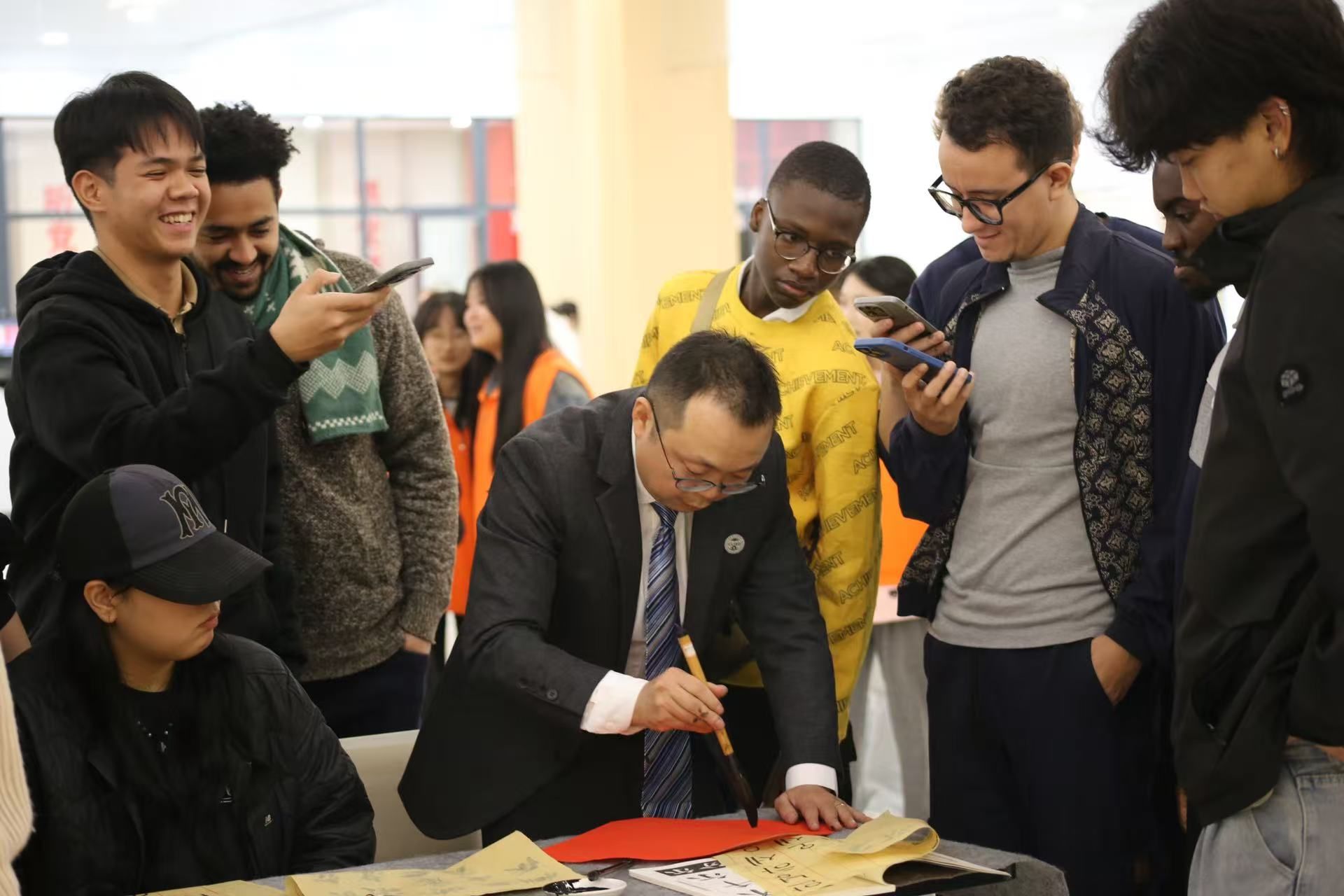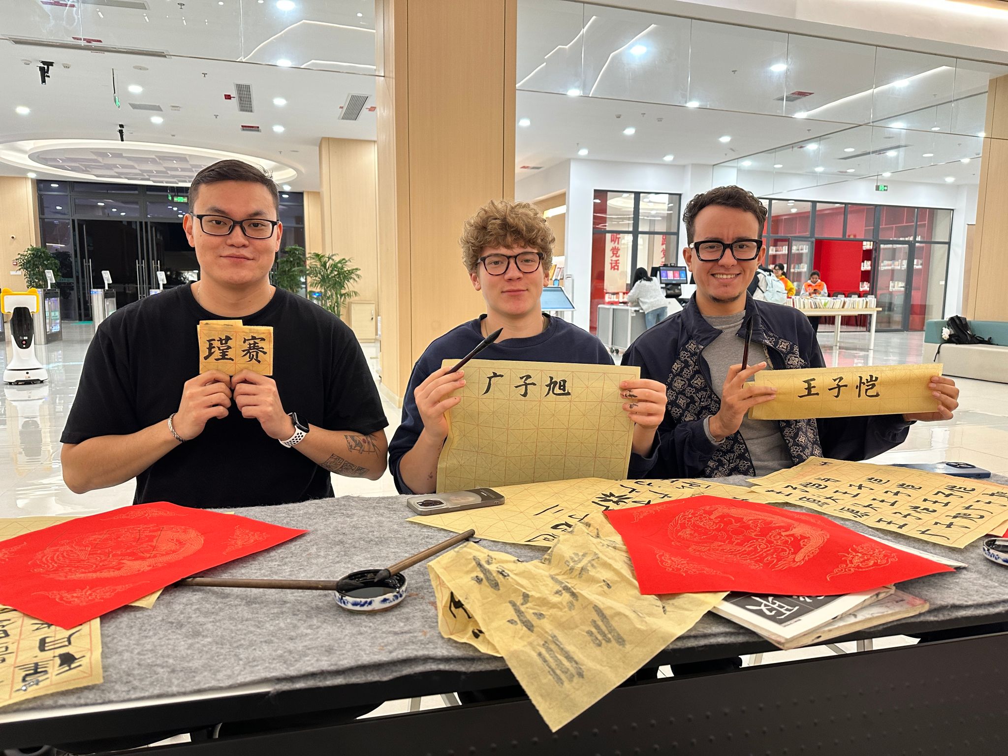 114日晚,“翰墨迎远,书香连心”留学生图书馆探索与传统文化体验活动在学校B校区图书馆1楼成功举办。