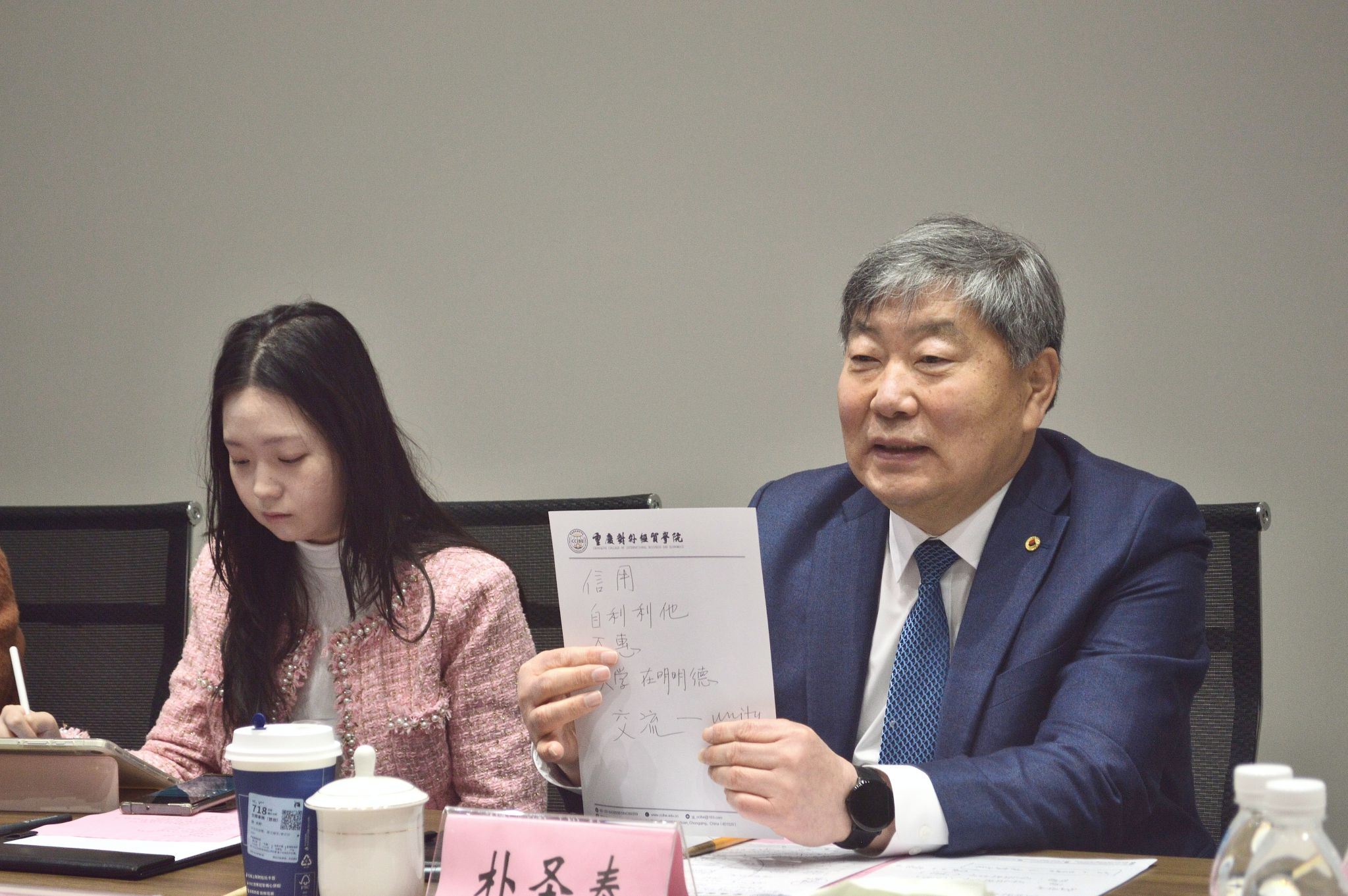 朴圣泰校长对我校的热情接待表示感谢,对学校教学设施与办学水平表示赞赏。他表示,愿与我校共同探索深化合作的路径,创新合作模式,巩固友好关系。朴校长还特别介绍了圆光大学在医疗健康、经营学、音乐、设计、体育等领域的学科优势,希望进一步开拓两校多元合作的可能性。